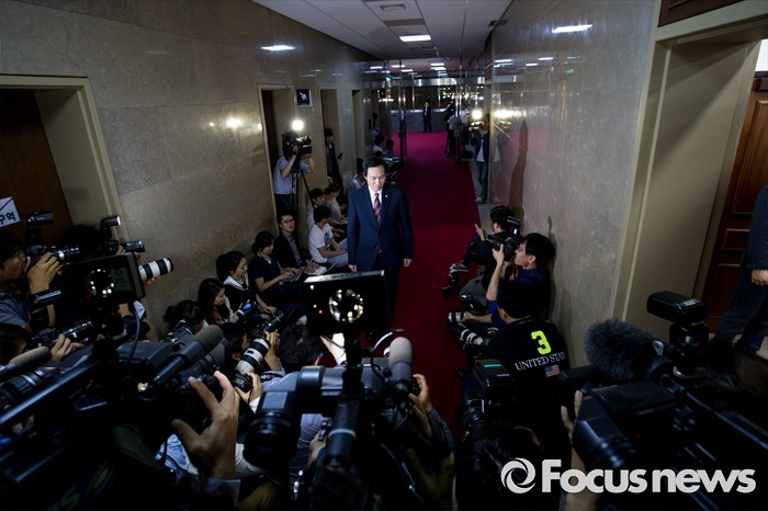 (서울=포커스뉴스) 우상호 더불어민주당 원내대표가 17일 오후 서울 여의도 국회에서 정세균 국회의장을 비롯한 여야 원내대표들과 회동을 하기 위해 국회의장실로 들어서고 있다.