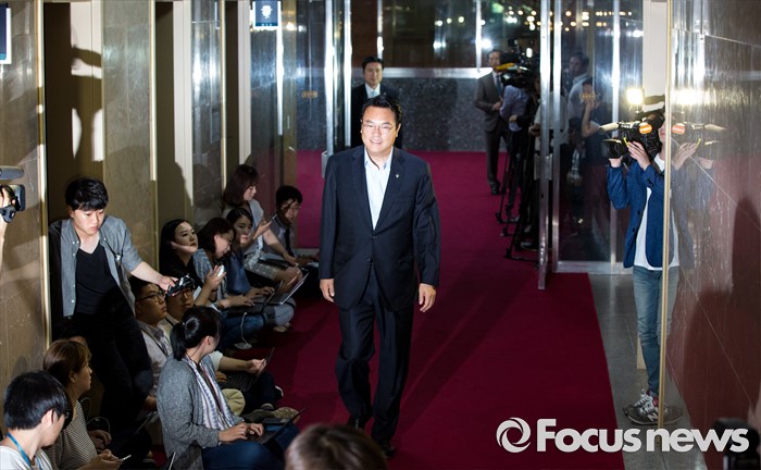 (서울=포커스뉴스) 정진석 새누리당 원내대표가 17일 오후 서울 여의도 국회에서 정세균 국회의장을 비롯한 야당 원내대표들과 회동을 하기 위해 국회의장실로 들어서고 있다.