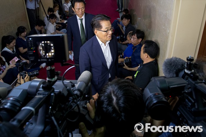 (서울=포커스뉴스) 박지원 국민의당 원내대표가 17일 오후 서울 여의도 국회에서 정세균 국회의장을 비롯한 여야 원내대표들과 회동을 하기 위해 국회의장실로 들어서고 있다.