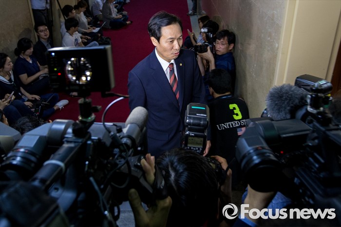 (서울=포커스뉴스) 우상호 더불어민주당 원내대표가 17일 오후 서울 여의도 국회에서 정세균 국회의장을 비롯한 여야 원내대표들과 회동을 하기 위해 국회의장실로 들어서고 있다.