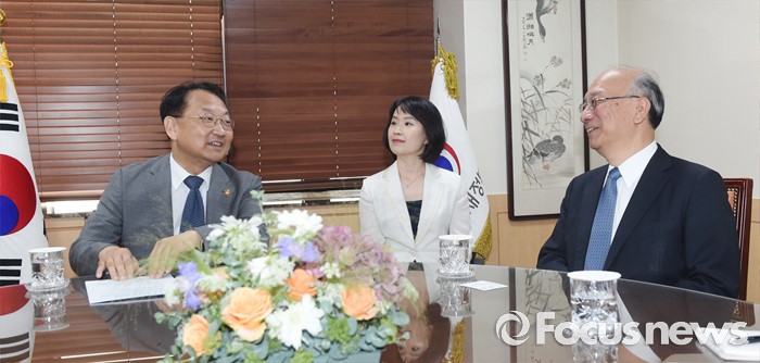 (서울=포커스뉴스) 유일호 부총리 겸 기획재정부 장관이 17일 오후 서울 종로구 서울청사에서 벳쇼 고로 주한 일본대사와 면담을 하고 있다.