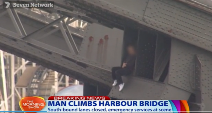 영국 BBC, 미국 ABC뉴스 등 외신은 17일(현지시간) "호주 하버사이드 경찰 당국이 하버 브리지를 걷고 있는 남성이 있다는 신고를 받고 출동한 경찰들이 다리 아치 구조물 위에 올라간 남성을 체포했다"고 보도했다.
