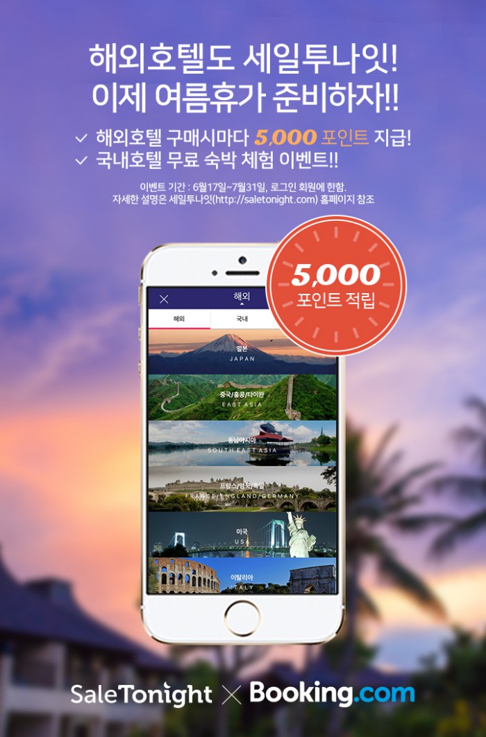 앞서 세일투나잇은 글로벌 호텔예약사이트 '부킹닷컴'과의 제휴를 통해 전 세계 224개국 92만개 숙박업체를 대상으로 해외호텔 예약서비스를 제공하게 됐다.