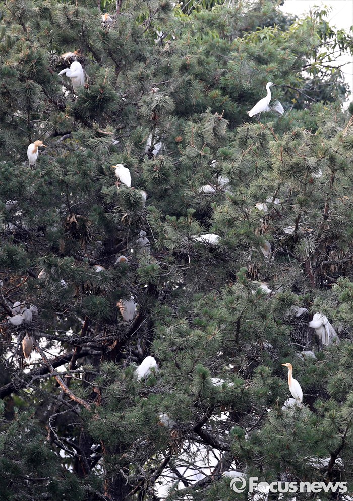 (청주=포커스뉴스) 17일 오후 충북 청주시 서원대학교 야산에 백로 수 백마리가 둥지를 틀고 있다.