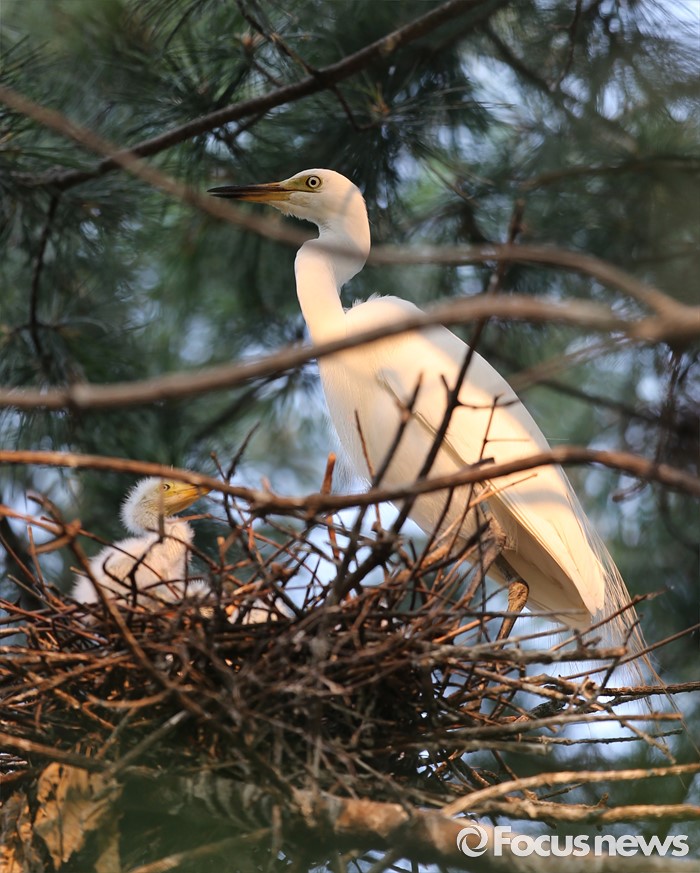 (청주=포커스뉴스) 17일 오후 충북 청주시 서원대학교 야산에 백로 수 백마리가 둥지를 틀고 있다.