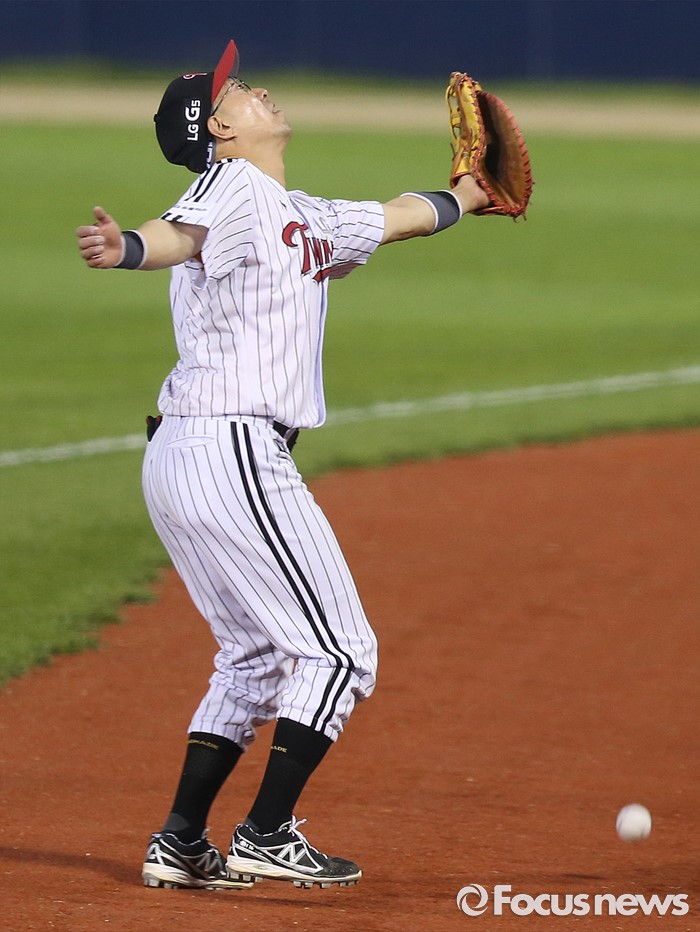 (서울=포커스뉴스) 17일 서울 잠실구장에서 열린 2016 프로야구 KIA-LG 경기 5회초 2사 2루에서 LG 1루수 정성훈이 워닝트랙에서 KIA 이범호의 파울 타구를 놓치고 있다.
