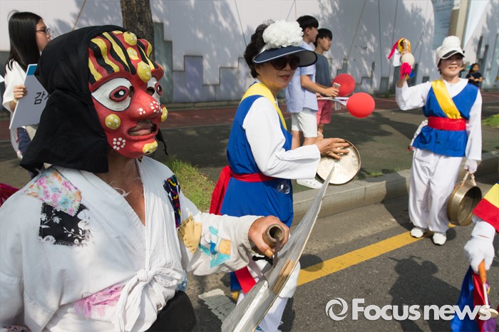 | △ '탈 쓰고 신나게 행진' |