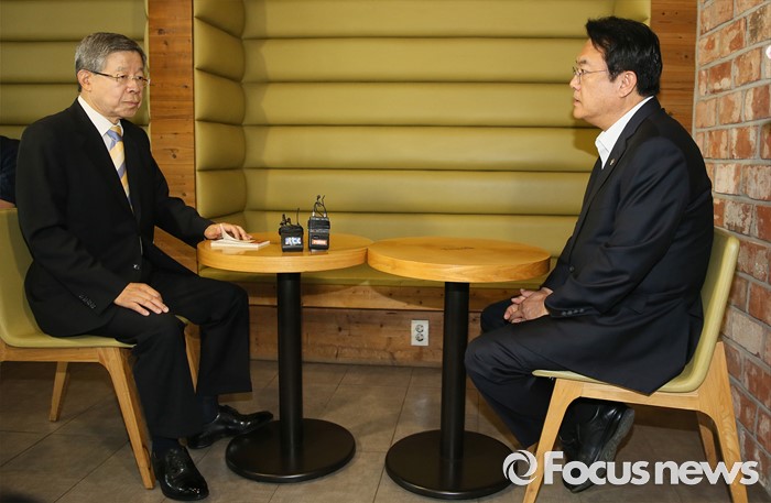 (서울=포커스뉴스) 김희옥 새누리당 혁신비상대책위원장과 정진석 원내대표가 19일 오전 서울 강남구 논현동 한 카페에서 비상대책위원회 정상화를 위한 회동을 하고 있다. 이번 회동은 지난 16일 탈당 무소속 의원들의 일괄복당을 결정한 혁신비대위 회의 과정에 불만을 제기하고 김 위원장이 칩거에 들어간지 나흘째 전격적으로 이뤄진 회동이다.