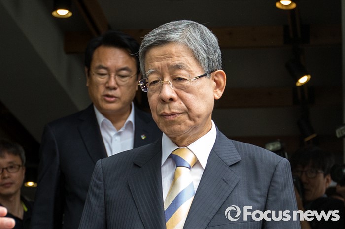 (서울=포커스뉴스) 김희옥(오른쪽) 새누리당 혁신비상대책위원장과 정진석 원내대표가 19일 오전 서울 강남구 논현동 한 커피숍에서 회동을 마친 뒤 굳은 표정을한 채 이동 하고 있다.