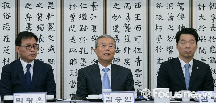 (서울=포커스뉴스) 20일 오전 서울 여의도 국회 귀빈식당에서 열린 더불어민주당 국민연금 공공투자 추진 특위 1차 회의에 참석한 김종인(가운데) 비대위 대표가 인사말을 하고 있다.