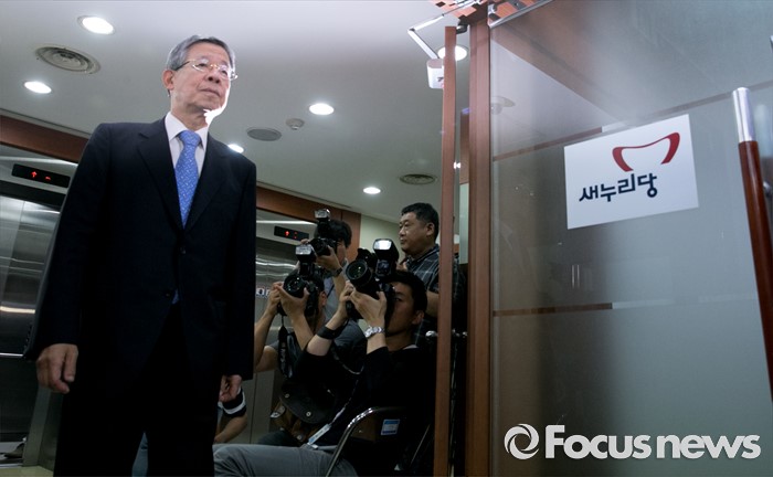 (서울=포커스뉴스) 당무 복귀를 선언한 김희옥 새누리당 혁신비대위원장이 20일 오전 서울 여의도 당사로 출근하고 있다.