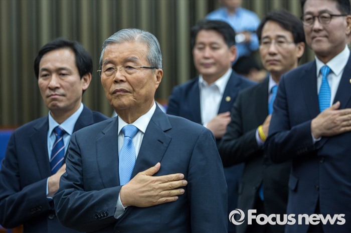 | △ 국민의례하는 김종인 대표-우상호 원내대표 |