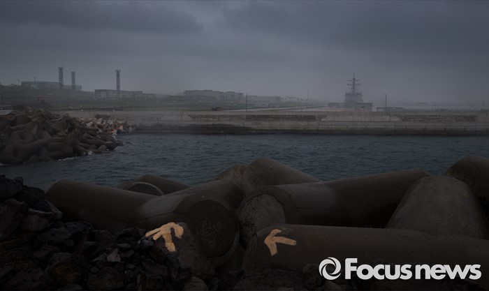 (제주=포커스뉴스) 서귀포시가 제주해군기지 크루즈터미널 조성공사를 이유로 해군기지 건설 반대운동에 사용해 온 망루 등 시설물들을 자진 철거하라는 3차 계고장을 강정마을회에 보내 행정대집행이 예고되고 있다. 20일 오전 제주 서귀포시 강정 포구에서 제주해군기지가 보이고 있다.