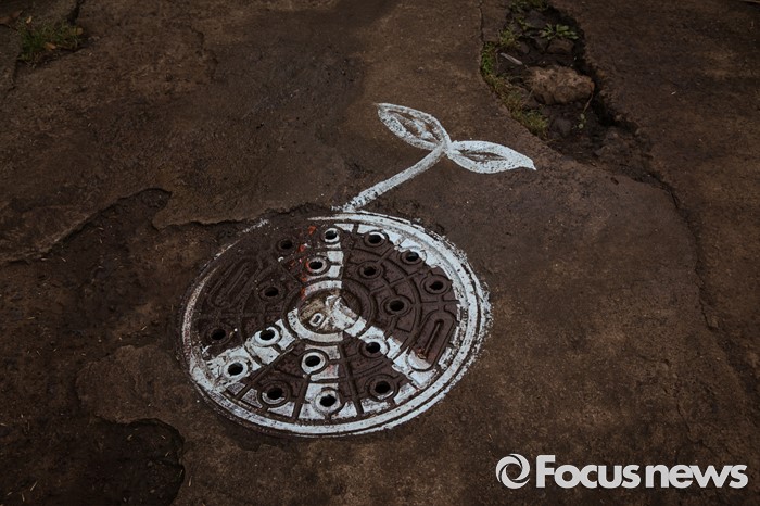 (제주=포커스뉴스) 서귀포시가 제주해군기지 크루즈터미널 조성공사를 이유로 해군기지 건설 반대운동에 사용해 온 망루 등 시설물들을 자진 철거하라는 3차 계고장을 강정마을회에 보내 행정대집행이 예고되고 있다. 20일 오전 제주 서귀포시 강정마을 중덕 삼거리 길 바닥에 예술가가 그린 생명의 메시지가 새겨져 있다.