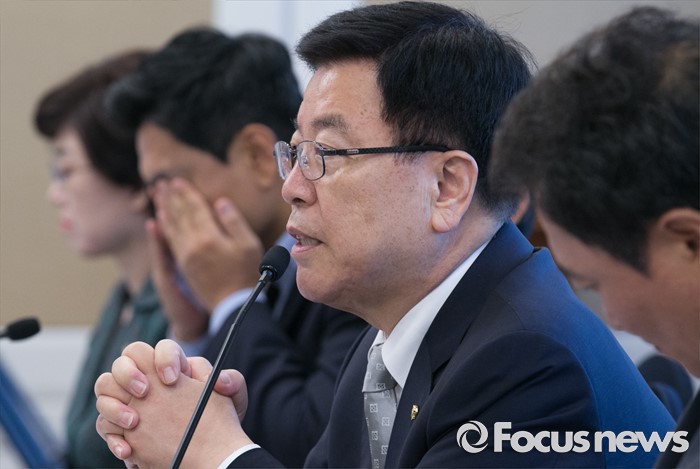 (서울=포커스뉴스) 21일 오전 서울 여의도 국회 귀빈식당에서 열린 새누리당 일자리특위 1차 회의에 참석한 김광림 정책위의장이 모두발언을 하고 있다.