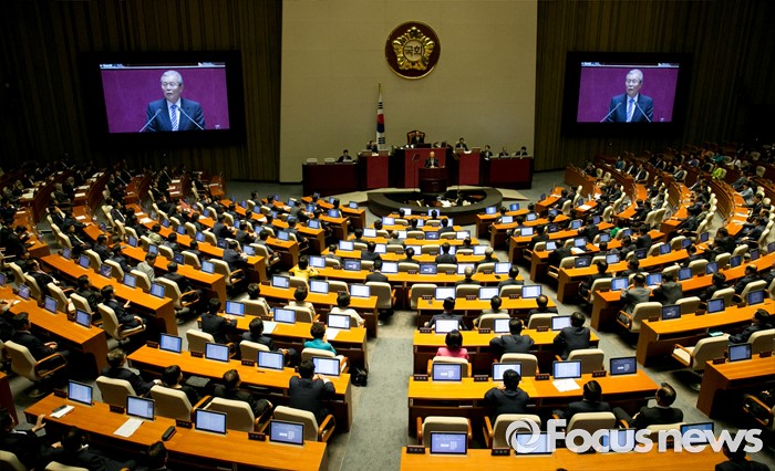 (서울=포커스뉴스) 21일 오전 서울 여의도 국회에서 열린 343회 국회(임시회) 4차 본회의에 참석한 김종인 더불어민주당 비대위 대표가 교섭단체 대표연설을 하고 있다.