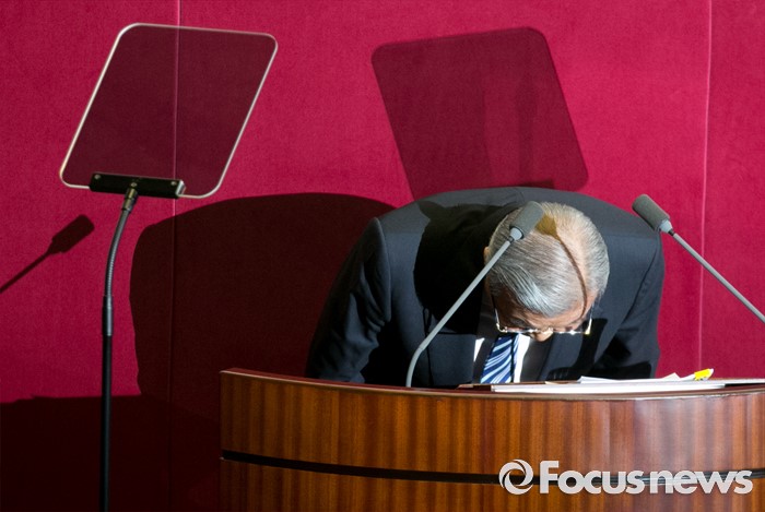 (서울=포커스뉴스) 21일 오전 서울 여의도 국회에서 열린 343회 국회(임시회) 4차 본회의에 참석한 김종인 더불어민주당 비대위 대표가 교섭단체 대표연설에 앞서 인사하고 있다.