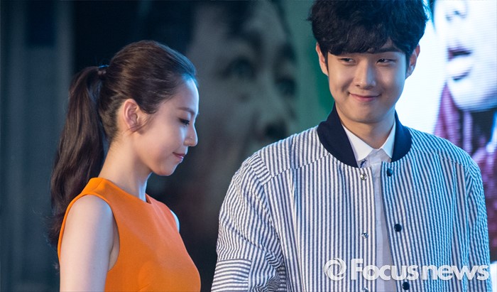 (서울=포커스뉴스) 21일 오전 서울 종로구 나인트리컨벤션에서 열린 영화 '부산행' 제작보고회에 참석한 배우 안소희(왼쩍)와 최우식이 자리를 향해 이동하고 있다.
