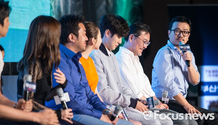 (서울=포커스뉴스) 21일 오전 서울 종로구 나인트리컨벤션에서 열린 영화 '부산행' 제작보고회에 참석한 연상호 감독이 사회자의 질문에 답하고 있다.