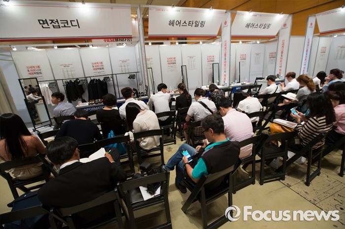 (서울=포커스뉴스) 21일 오후 서울 강남구 코엑스 D2홀에서 열린 신세계그룹&파트너사 채용박람회에서 구직자들이 상담을 기다리고 있다.