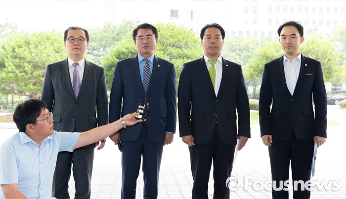 (서울=포커스뉴스) 21일 오후 서울 서초구 대검찰청에서 이용주(오른쪽 두번째) 국민의당 의원이 어버이연합 등 불법자금지원 의혹 규명 진상조사 특별팀(TF)의 항의방문을 위해 대검으로 들어서고 있다. 왼쪽부터 이건태 국민의당, 최경환 의원, 이용주 의원, 채이배 의원.