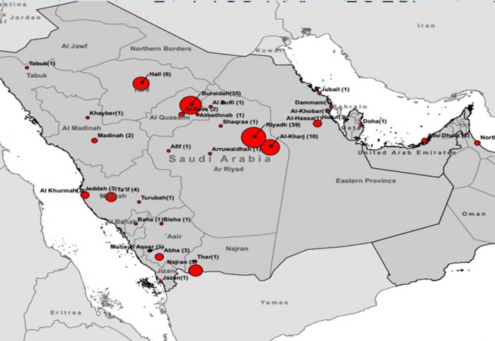 21일 질본에 따르면 사우디아라비아는 올들어 총 136명의 메르스 환자가 발생했으며, 이번 리야드시 병원 내 유행은 6월 중순부터 시작돼 현재(6월 21일 0시)까지 20명(의료인 14명, 일반인 6명)의 환자가 발생했다.