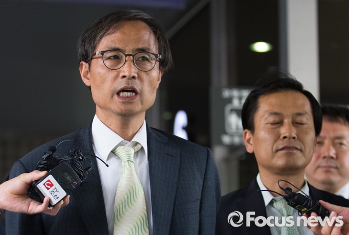 (서울=포커스뉴스) 천낙붕 민주 사회를 위한 변호사모임 소속 변호사가 21일 오후 서울 서초구 서울중앙지방법원에서 국가정보원 상대 북한 식당종업원 인신구제청구 1차 심문기일에 참석 전 취재진 질문에 답변하고 있다.