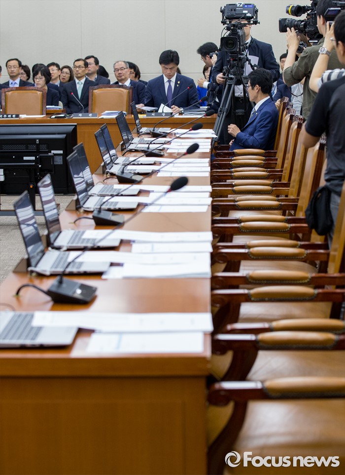 (서울=포커스뉴스) 21일 오후 서울 여의도 국회에서 열린 보건복지위 전체회의에서 위원석이 지각으로 텅 비어 있다.