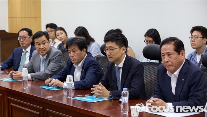 (서울=포커스뉴스) 동남권 신공항 입지발표를 앞두고 발표 중계방송 시청을 위해 모인 새누리당 김세연, 김도읍 등 부산지역 의원들이 21일 오후 서울 여의도 국회의원회관에서 신공항 선정 발표를 기다리고 있다.