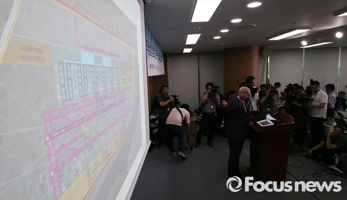 (세종=포커스뉴스) 장 마리 슈발리에 프랑스 파리공항공단자회사 ADPi 수석엔지니어가 21일 오후 세종시 정부세종청사 국토교통부 브리핑실에서 열린 동남권 신공항 타당성 검토 연구 최종 보고회에서 입지선정 결과를 발표하고 있다.