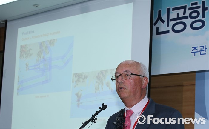(세종=포커스뉴스) 장 마리 슈발리에 프랑스 파리공항공단자회사 ADPi 수석엔지니어가 21일 오후 세종시 정부세종청사 국토교통부 브리핑실에서 열린 동남권 신공항 타당성 검토 연구 최종 보고회에서 입지선정 결과를 발표하고 있다.