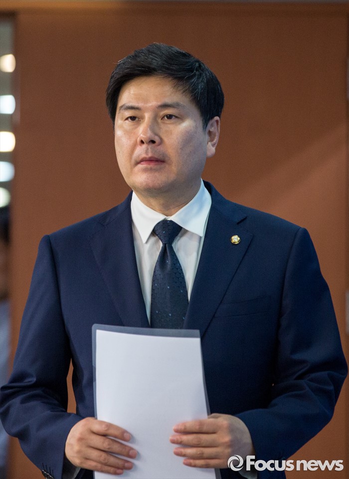 (서울=포커스뉴스) 지상욱 새누리당 대변인이 21일 오후 서울 여의도 국회에서 신공항 입지 선정관련 입장발표를 하기 위해 기자회견장으로 들어서고 있다.