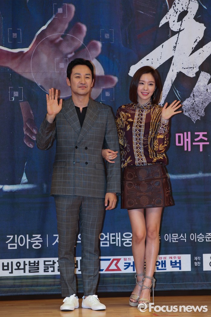 (서울=포커스뉴스) 21일 오후 서울 양천구 목동SBS에서 열린 SBS드라마스페셜 원티드 제작발표회에 참석한 배우 엄태웅,배우 김아중이 포토타임을 갖고 있다.