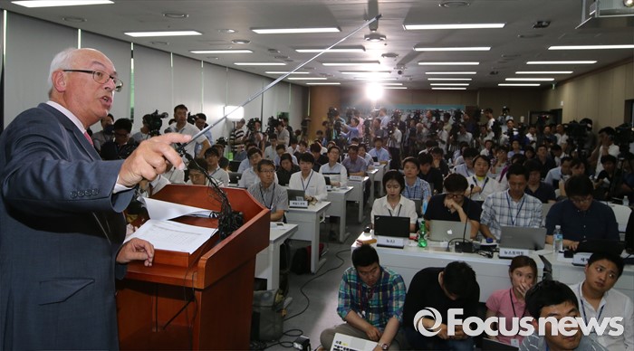 (세종=포커스뉴스) 장 마리 슈발리에 프랑스 파리공항공단자회사 ADPi 수석엔지니어가 21일 오후 세종시 정부세종청사 국토교통부 브리핑실에서 열린 동남권 신공항 타당성 검토 연구 최종 보고회에서 입지선정 결과를 발표하고 있다.