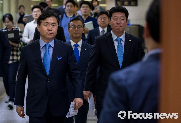 (서울=포커스뉴스) 더불어민주당 부산 지역 의원들이 21일 오후 영남권 신공항 결과 발표 관련 기자회견을 위해 서울 여의도 국회 정론관으로 발걸음을 옮기고 있다.