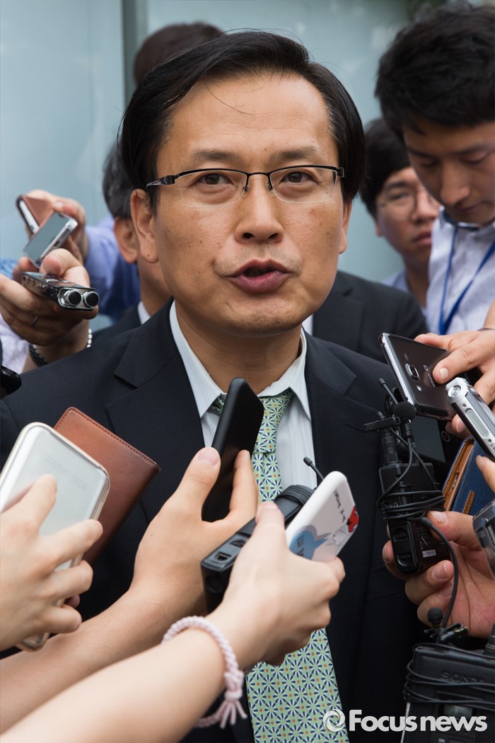 (서울=포커스뉴스) 채희준 민주 사회를 위한 변호사모임 통일위원회 위원장이 21일 오후 서울 서초구 서울중앙지방법원에서 국가정보원 상대 북한 식당종업원 인신구제청구 1차 심문기일을 마친 뒤 취재진 질문에 답하고 있다.