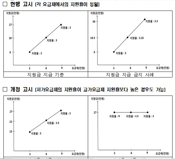 현행 고시는 이동통신사업자가 지원금을 지급할 때 각 요금제별 지원금의 비례성을 충족하도록 규정(지원금 비례원칙)하고 있다. 이 조항은 요금제 액수에 비례해서 단말기 지원금을 제공해야만 하는 것처럼 해석돼 왔다.