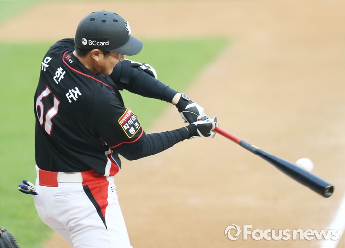 (서울=포커스뉴스) 21일 서울 잠실구장에서 열린 2016 프로야구 kt-두산 경기에서 2회초 kt 유한준이 타격하고 있다.