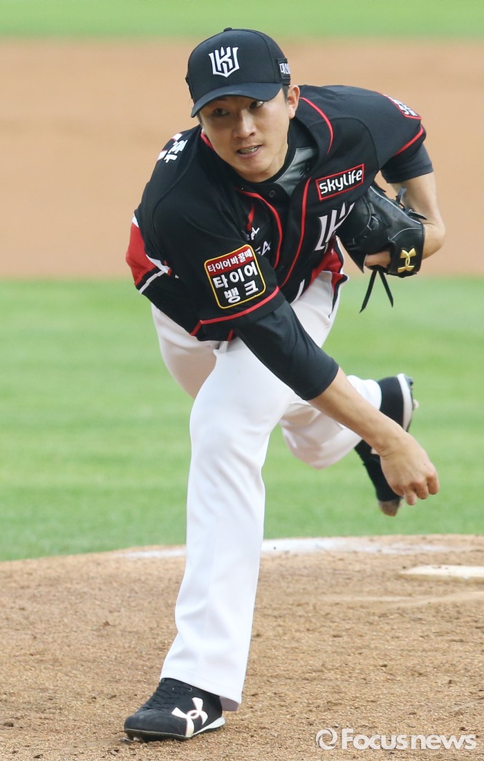 (서울=포커스뉴스) 21일 서울 잠실구장에서 열린 2016 프로야구 kt-두산 경기에서 1회말 kt 선발투수 장시환이 투구하고 있다.