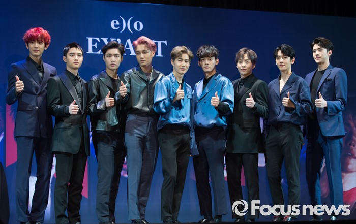 엑소는 지난 9일 세 번째 정규앨범 '이그잭트(EX'ACT)'의 더블 타이틀곡 '몬스터'와 '럭키 원'으로 활동 중이다.(서울=포커스뉴스) 8일 오전 서울 강남구 코엑스 아티움에서 열린 아이돌 그룹 엑소의 3집 앨범 'EX'ACT' 발표 쇼케이스에 참석한 멤버들이 포토타임을 갖고 있다. 2016.06.08 김유근 기자 (서울=포커스뉴스) 8일 오전 서울 강남구 코엑스 아티움에서 열린 아이돌 그룹 엑소의 3집 앨범 'EX'ACT' 발표 쇼케이스에 참석한 멤버들이 포토타임을 갖고 있다. 2016.06.08 김유근 기자