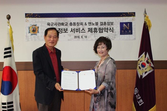 (서울=포커스뉴스) 결혼정보회사 엔노블은 최근 육군사관학교(이하 육사) 총동창회와 최근 결혼정보 서비스 관련 업무협약(MOU)을 체결했다고 21일 밝혔다.