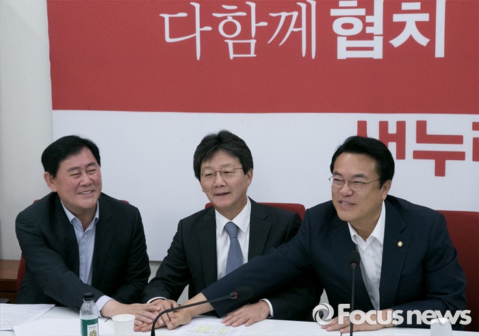 | △ 협치 아래 손 모은 정진석-유승민-최경환 |