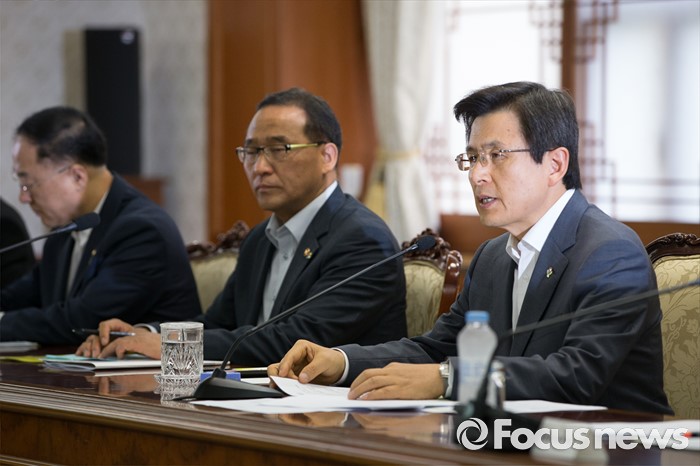 (서울=포커스뉴스) 22일 오전 서울 종로구 정부서울청사에서 열린 '신공항 후속조치 논의 관계장관회의에 참석한 황교안 국무총리가 모두발언하고 있다.
