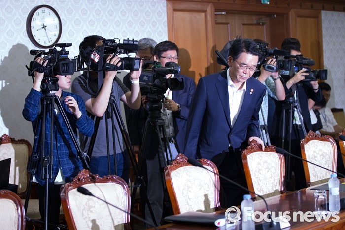 (서울=포커스뉴스) 22일 오전 서울 종로구 정부서울청사에서 강호인 국토교통부 장관이 '신공항 후속조치 논의 관계장관회의'에 참석하고 있다.