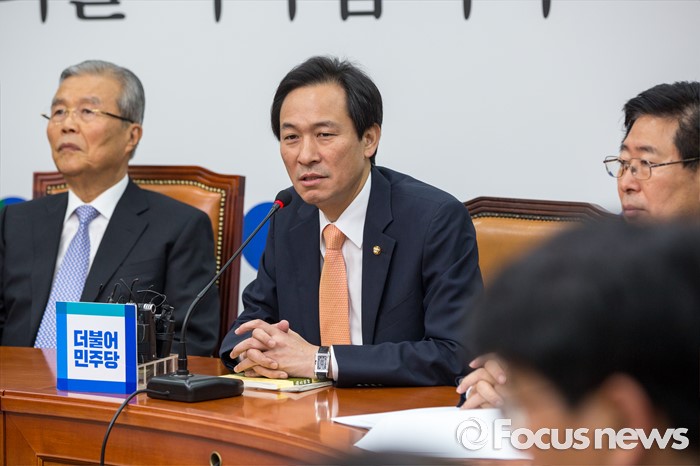 (서울=포커스뉴스) 우상호 더불어민주당 원내대표가 22일 오전 서울 여의도 국회에서 열린 비상대책위원회의에 참석해 모두발언 하고 있다.