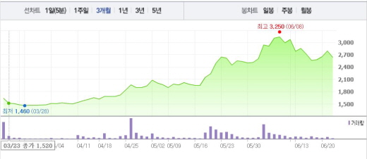 가장 낙폭이 큰 업체는 상승세를 기록하던 오리엔트 바이오다. 뇌염백신과 인플루엔자 백신의 생산원료를 공급하는 오리엔트 바이오는 3거래일 연속 상승세를 마감하고 5%대의 낙폭을 기록 중이다.