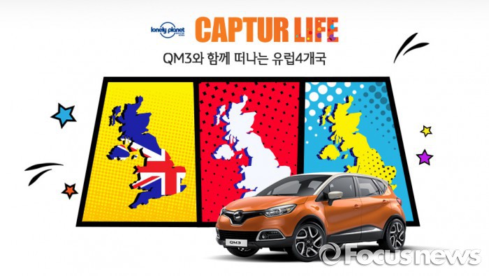 (서울=포커스뉴스) 르노삼성자동차는 다음달부터 10월까지 총 4팀의 QM3 유럽 원정대를 선발, 론리플래닛 매거진 코리아 에디터와 유럽 4개국을 돌며 QM3을 홍보하는 '캡처 라이프(Captur Life)' 캠페인을 진행한다.