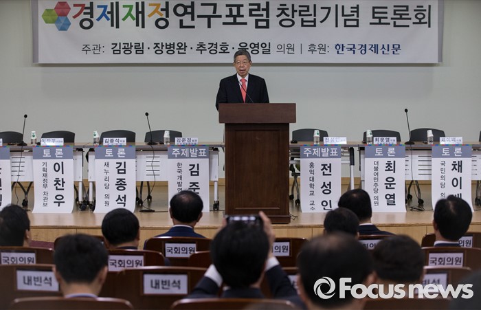 (서울=포커스뉴스) 김희옥 새누리당 혁신비대위 위원장이 22일 오전 서울 여의도 국회 의원회관에서 열린 '경제재정연구포럼 창립기념 토론회'에 참석해 축사하고 있다.