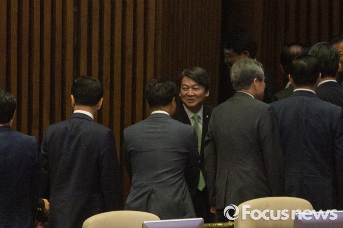 (서울=포커스뉴스) 안철수 국민의당 상임공동대표가 22일 오전 서울 여의도 국회에서 열린 본회의에 참석해 교섭단체대표연설을 마친 뒤 동료의원들과 인사 하고 있다.