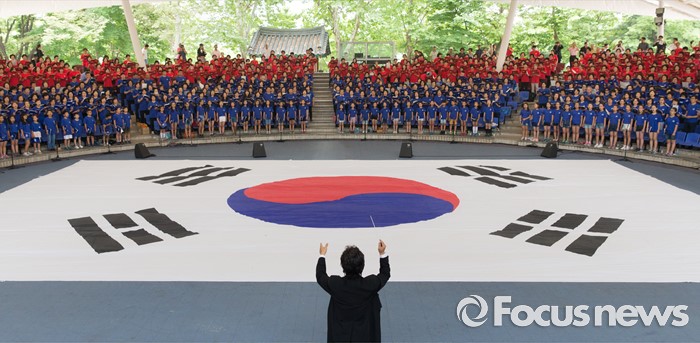 (서울=포커스뉴스) 22일 오전 서울 송파구 서울놀이마당에서 열린 '통일대합창, 625명이 함께하는 평화공감' 행사에 참가한 송파구민들이 합창하고 있다. 이번 행사는 관내 합창단과 노래동아리 등 송파구민 1000여명이 신청해 2주전부터 개별적으로 연습 한 후 통일대합창에 참가 했다.